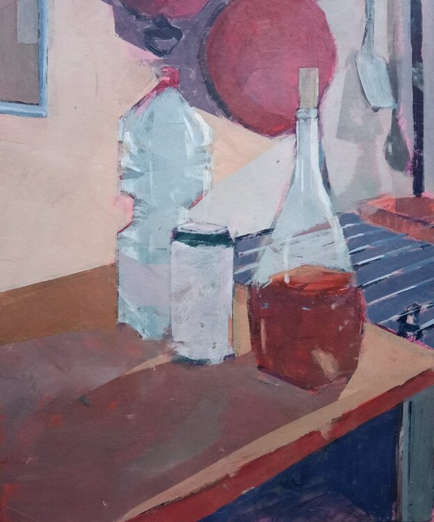 A still life (nature morte) is a painting that depicts an arrangement of inanimate objects. These items are usually placed on the table and often include organic items such as fruits and flowers and household items such as glass and textiles.