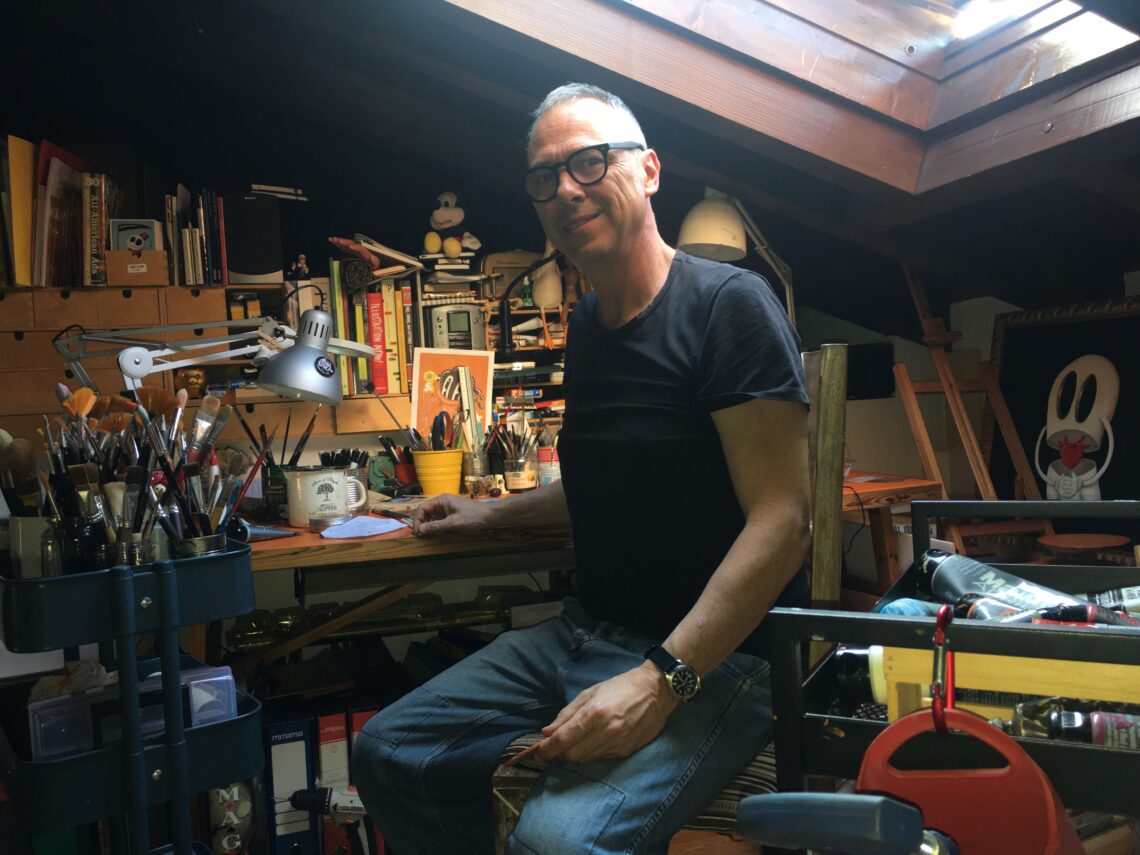 My name is Paolo Deandrea, I was born in Milan in 1963. Graduated in Illustration and Comics, I worked in publishing and advertising as an illustrator, journalist and cartoonist. Since 2015 I started to paint a series of subjects in acrylic colors on canvas and wood, giving life to “le Moschine”, a small crowd of surreal, wacky, funny and a bit melancholy characters, who take up in a popsurrealist key the style and characters of American cartoons of the 1920s – 1930s.