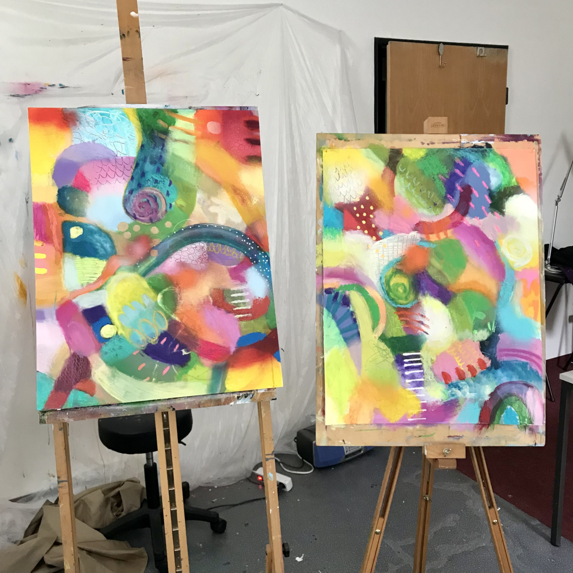 I am an abstract, expressionist painter. Bright colours, floral & organic forms find a place in my paintings as impressions from nature, my inner world. Colourful contrasts and strong rhythms float together in an imaginative harmony. The joie de vivre of my works takes the viewer along, creates emotional touches of liveliness. Using a variety of painting mediums such as acrylic, oil pastel, ink, pencil, colour spray, textured gel and more, each artwork tells its story. From a place of intuition, combined with knowledge of colours and materials, I build the painting layer by layer and with expressive detail.